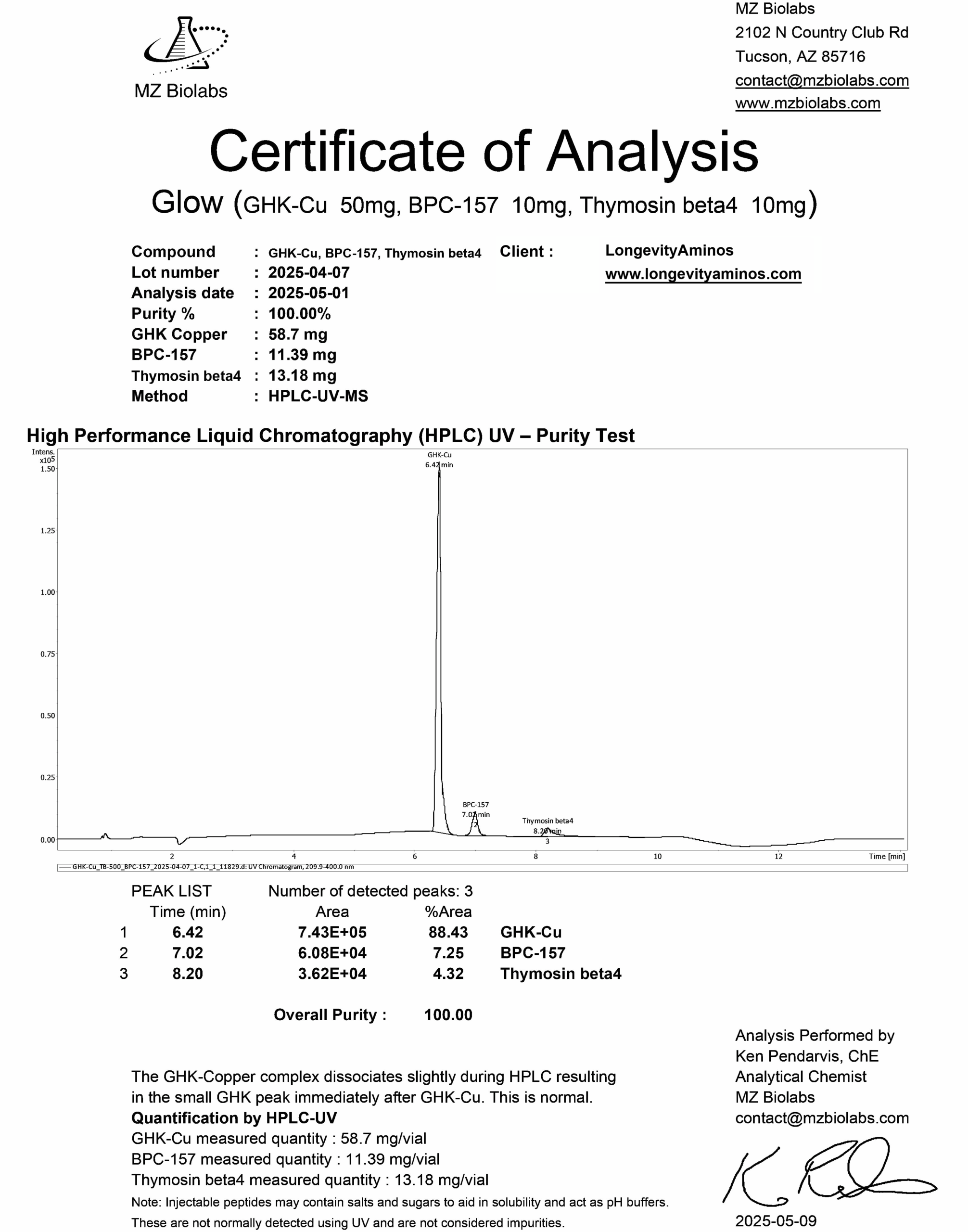 Lab Verified Peptide Purity Results