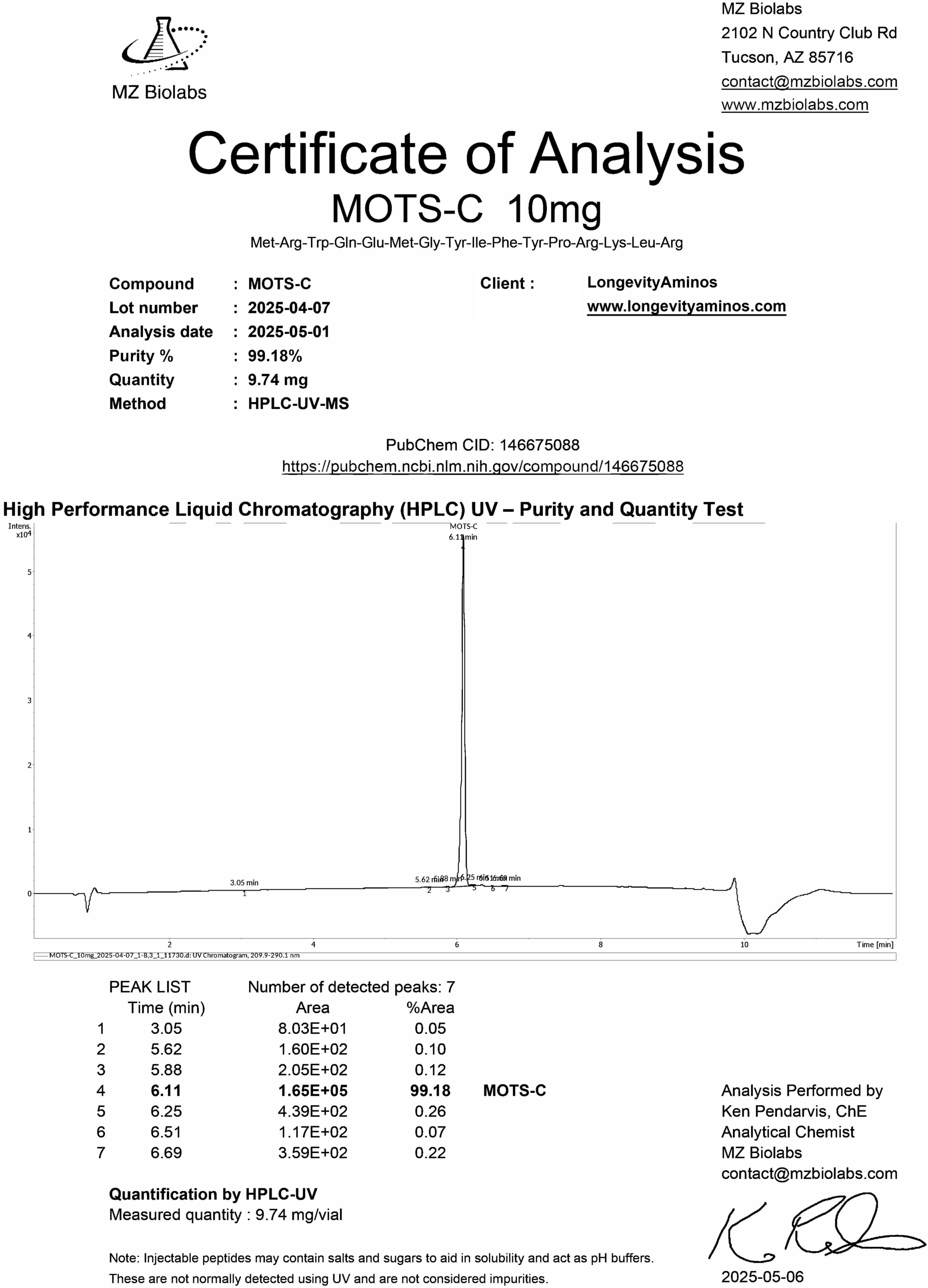 Mots-C: 9.74 mg