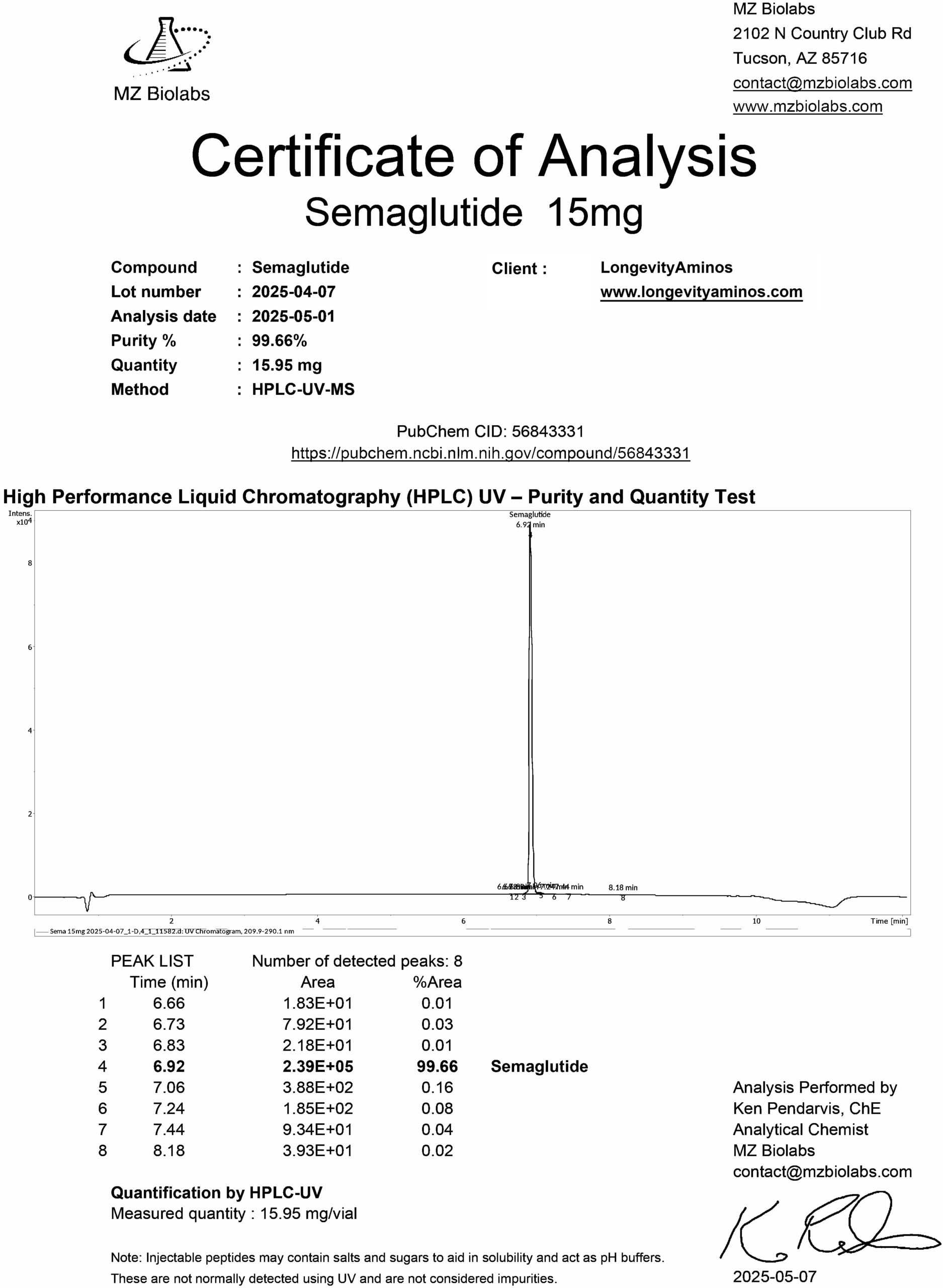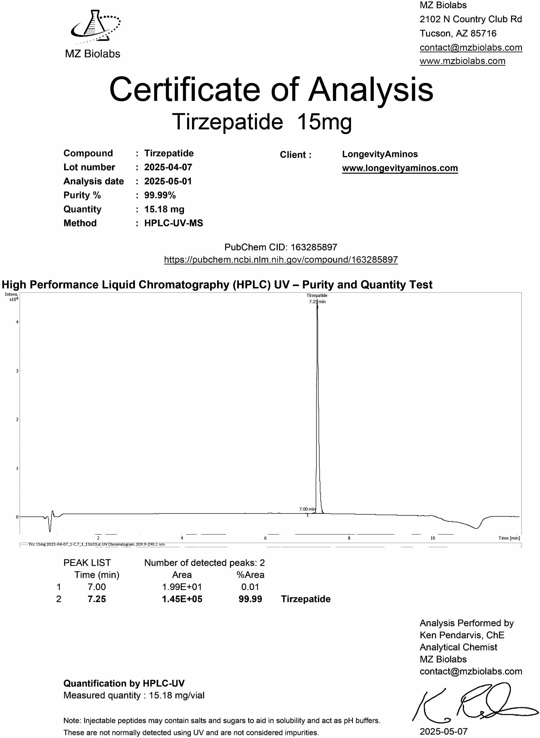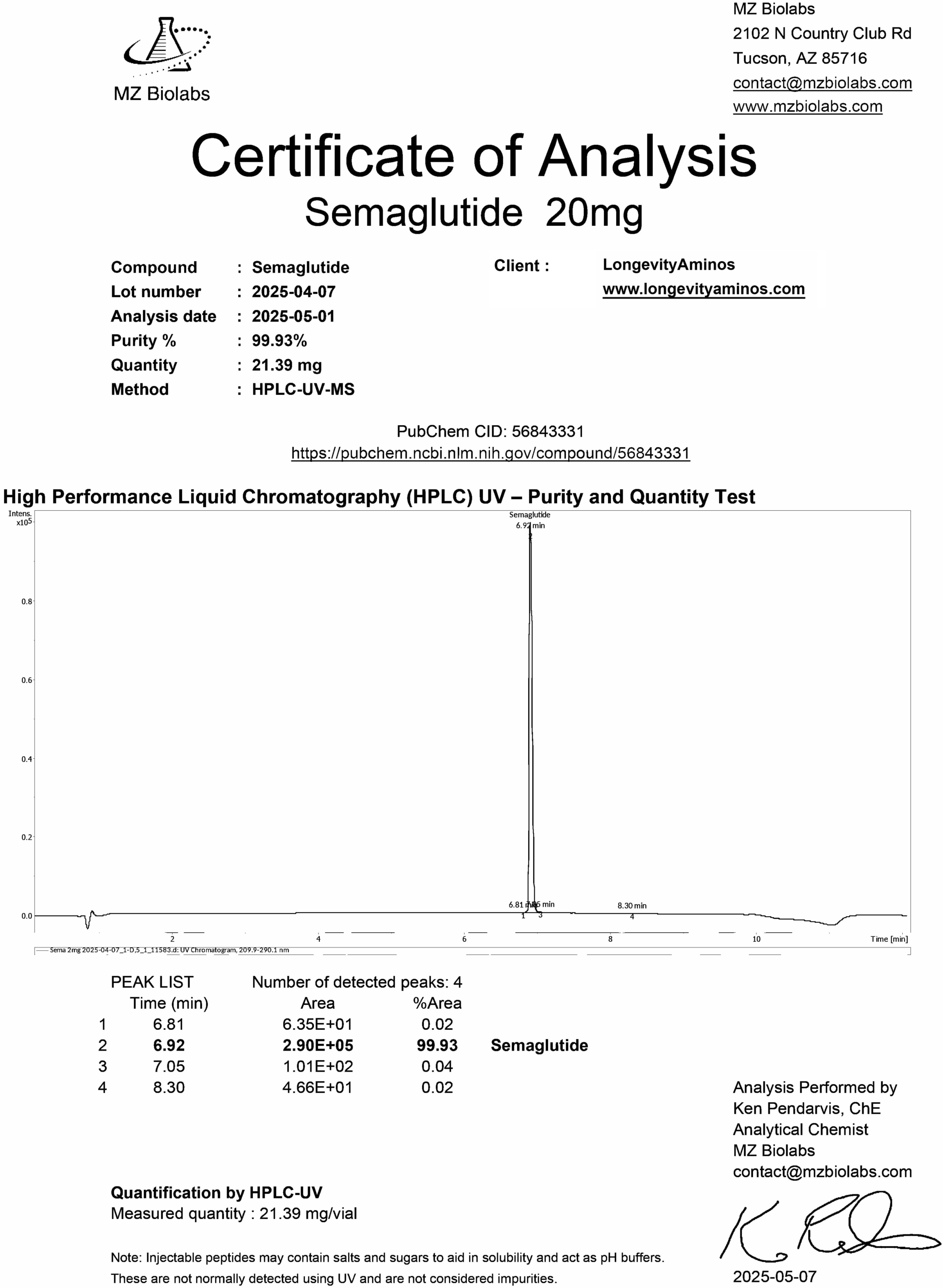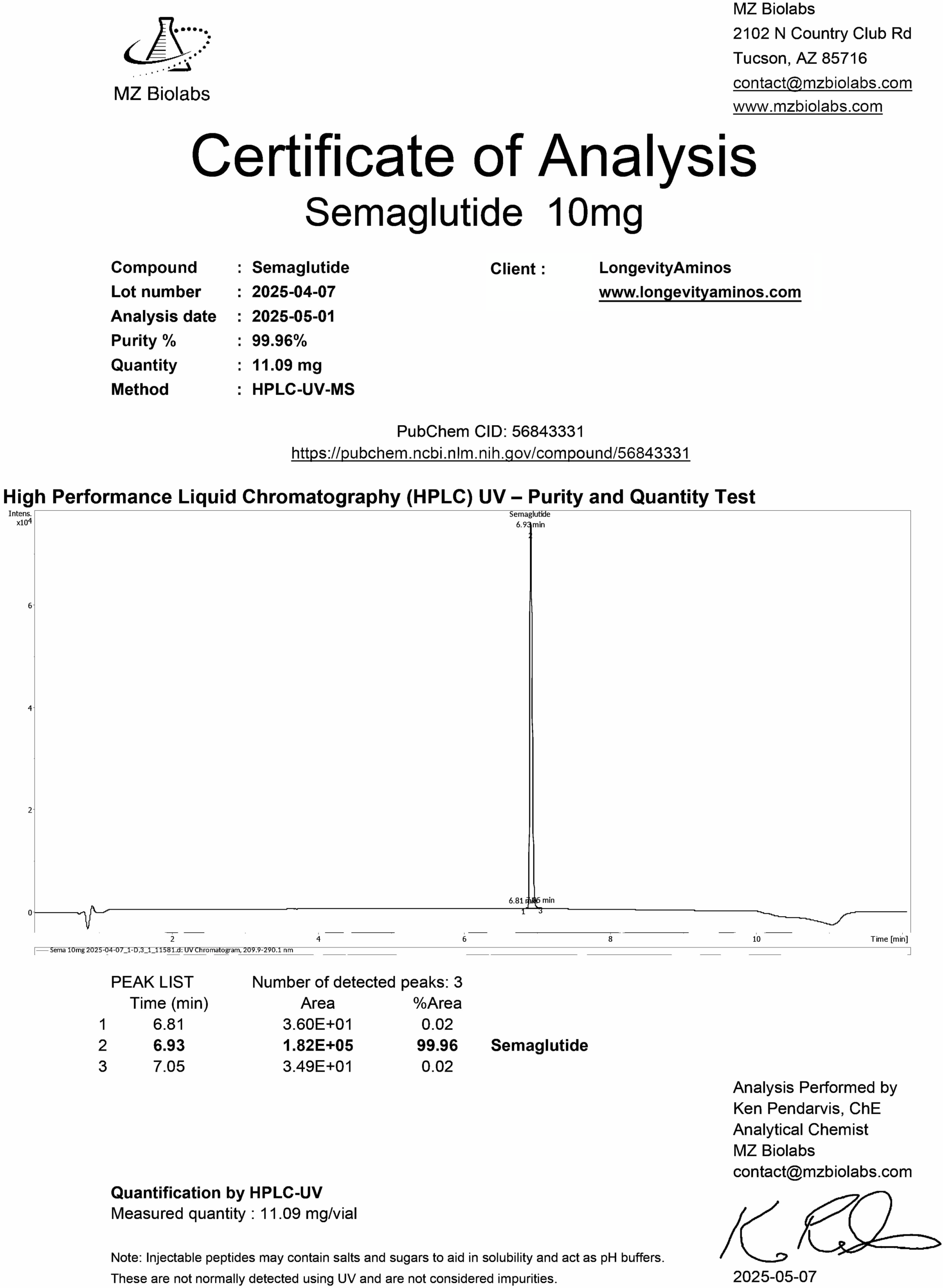 Independent US laboratory testing for LongevityAminos research peptides.