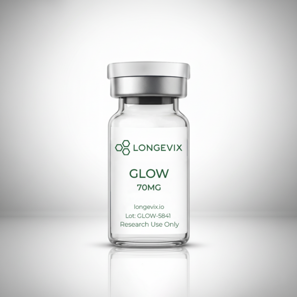 GLOW is an advanced triple-peptide formulation engineered to support skin regeneration, firmness, and a youthful appearance. Each vial combines three of the most studied cosmetic research peptides — GHK-Cu (50 mg), BPC-157 (10 mg), and TB-500 (10 mg) — blended in precise ratios to help the skin look smoother, healthier, and more revitalized over time.